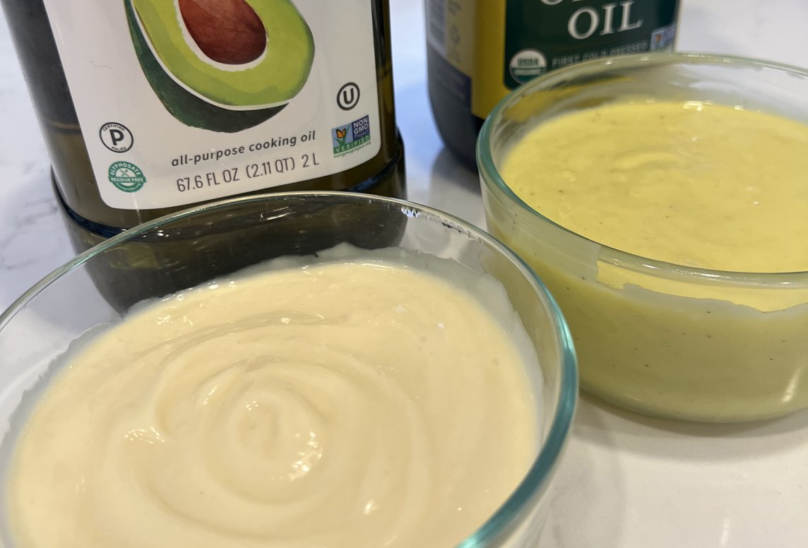 Opt for healthier oils, like avocado and olive. Make mayonnaise at home with quality ingredients for a healthy treat. It is a quick recipe and much less expensive than the bottled brands.