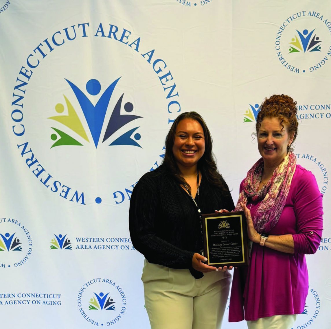 Municipal Agent Tamires Dasilva & Director Susan Tomanio received an award from the Western Connecticut Area Agency on Aging, naming Elmwood Hall Danbury Senior Center a Senior Focal Point for the State of Connecticut.