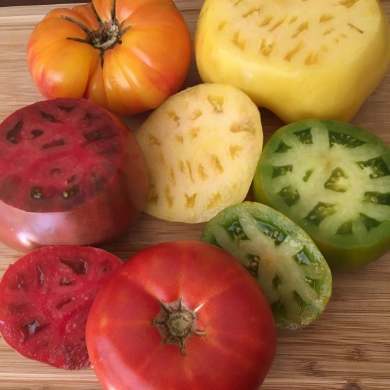 Para cuando esto se imprima, ¡los tomates locales estarán en abundancia! Nuestros favoritos son las variedades tradicionales de Halas Farm en Danbury. Mi forma favorita de disfrutarlos es con un poco de mayonesa, sal y pimienta sobre una tostada casera de masa fermentada.