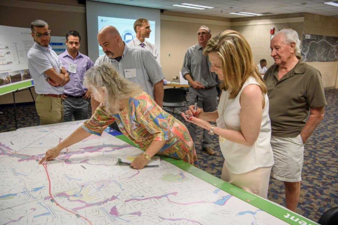 Legenda: Membros da comunidade discutem sobre o corredor I-84 com a Equipe de Estudo