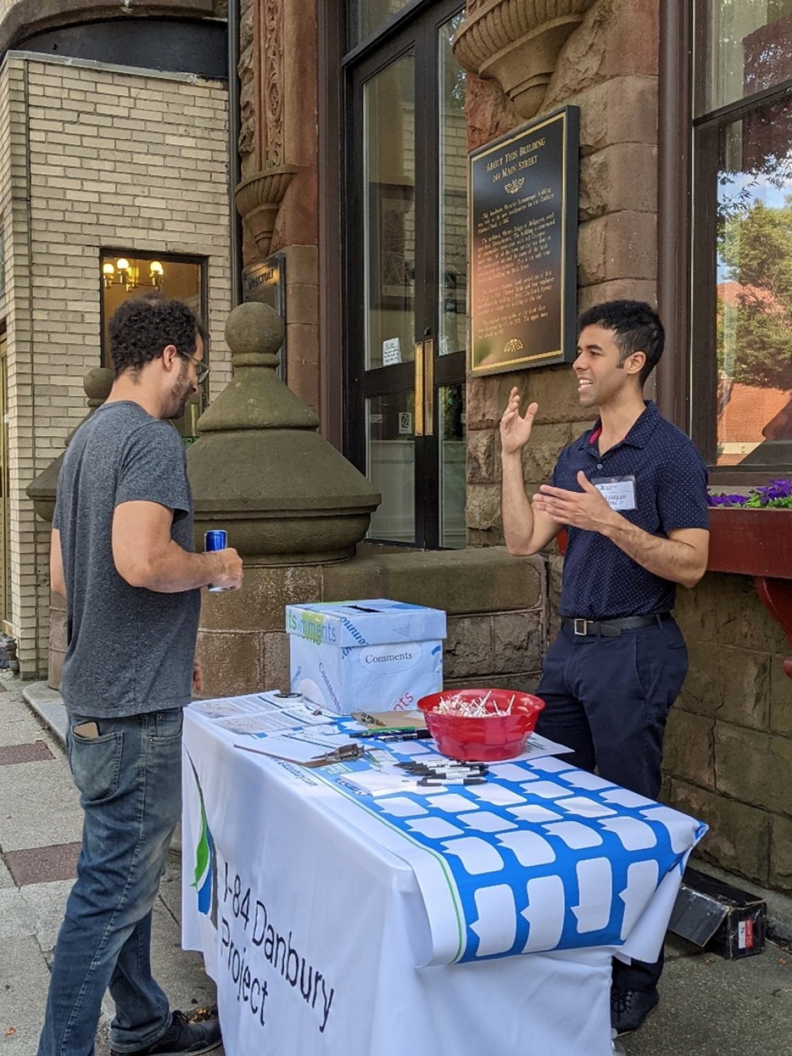 Em outra questão, a equipe do Projeto Danbury I-84 está animada em poder apresentar novamente uma oportunidade para fornecer informações ao público em vários eventos/locais na comunidade de Danbury. Este comparecimento presencial regular e a capacidade de falar com os residentes e viajantes foi suspenso no começo da pandemia da COVID-19. Exemplos de tais eventos frequentados pela equipe incluem o Danbury Pop-up & Play, o Mercado Agricultor de CityCenter, visitas a mercados locais, e o Museu de Danbury. Membros da comunidade tipicamente ofereceram ótimos comentários nesses tipos de eventos. A equipe finalmente está de volta! A equipe recentemente frequentou o evento Danbury Pop-up & Play em 6 de agosto e está ansiosa para participar novamente! A equipe do projeto planeja anunciar quando estará de volta nas redes sociais.