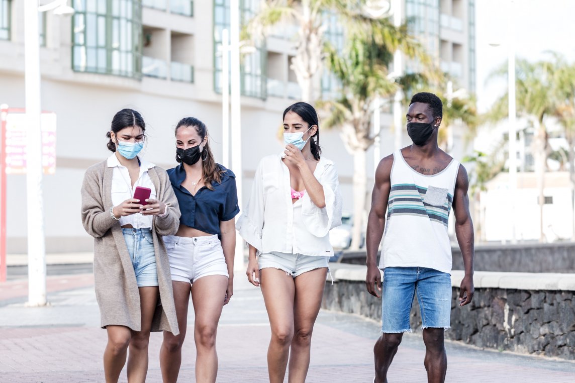 - Usem máscara em áreas públicas internas caso estejam numa área com nível de transmissão substancial ou alto.