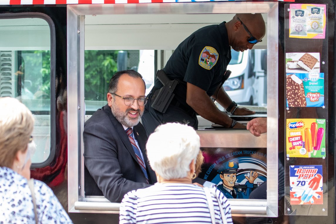 El Alcalde Alves se unió a los policías en el evento Grillin' & Chillin' para ayudar a servir helado desde el nuevo camión “Copsicle” de Danbury.