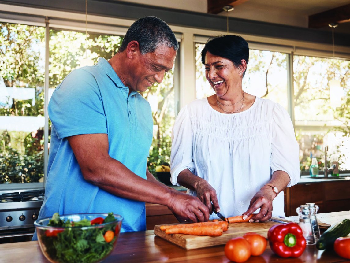 Faça ajustes nutricionais: Reduza seu consumo de bebidas açucaradas e alimentos processados, principalmente aqueles com grandes níveis de sódio e açúcar adicionado. As bebidas açucaradas, até mesmo os sucos de fruta 100% naturais, estão associados a um maior risco de mortalidade, de acordo com um estudo publicado pela Rede Aberta da JAMA. Beba água e opte por alimentos integrais e nutritivos, incluindo frutas, legumes, grãos integrais, nozes e sementes, laticínios de baixa gordura, e frango e carnes magras.